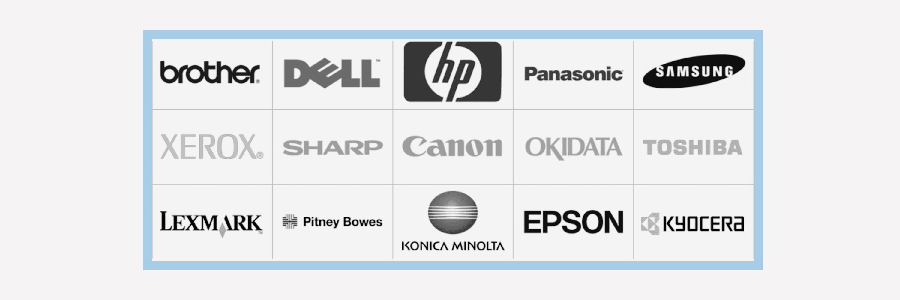 There are a ton of major printer manufacturers you can buy from, including HP, Toshiba, Epson, Konica Minolta and Canon, among many others.